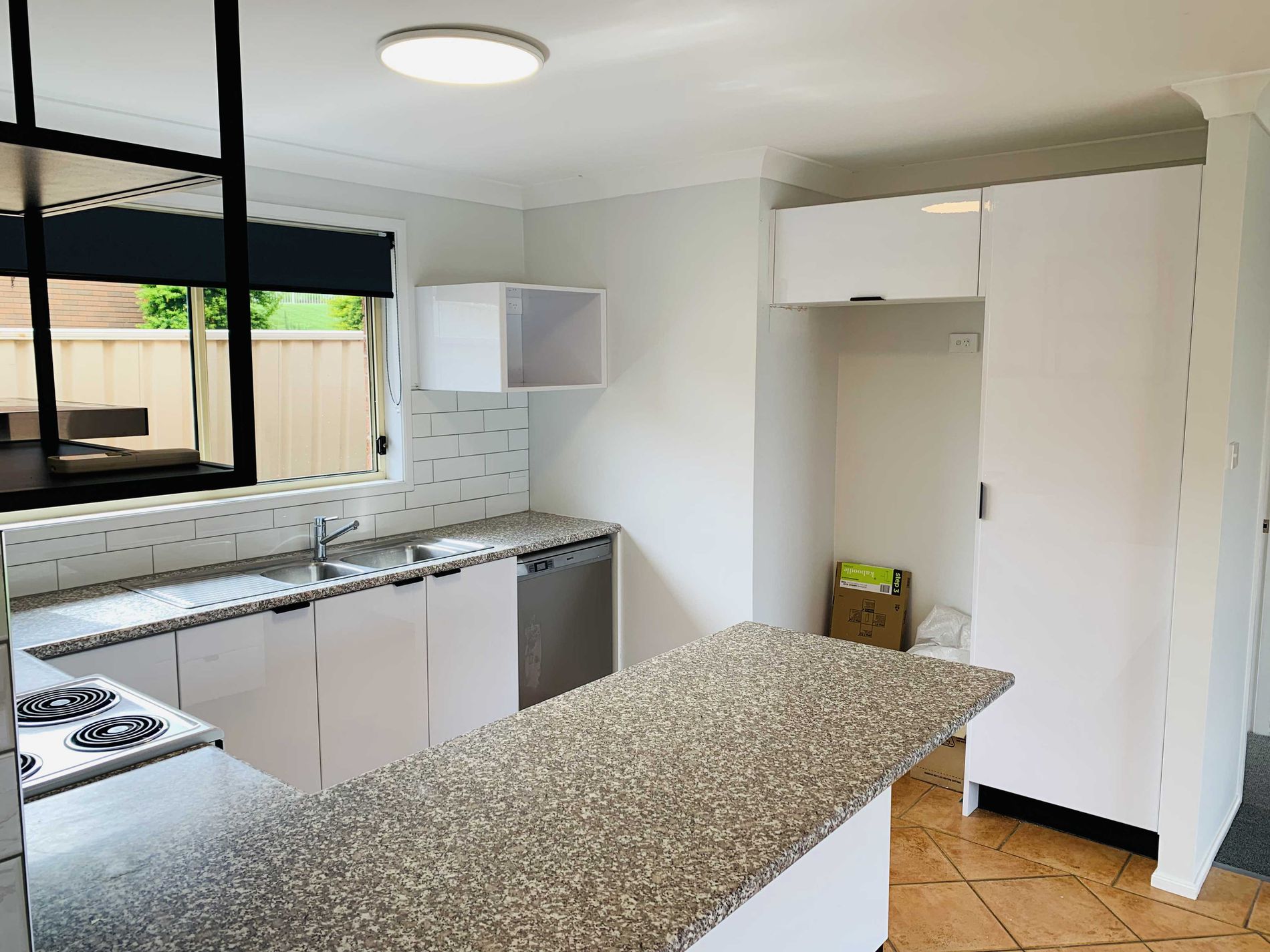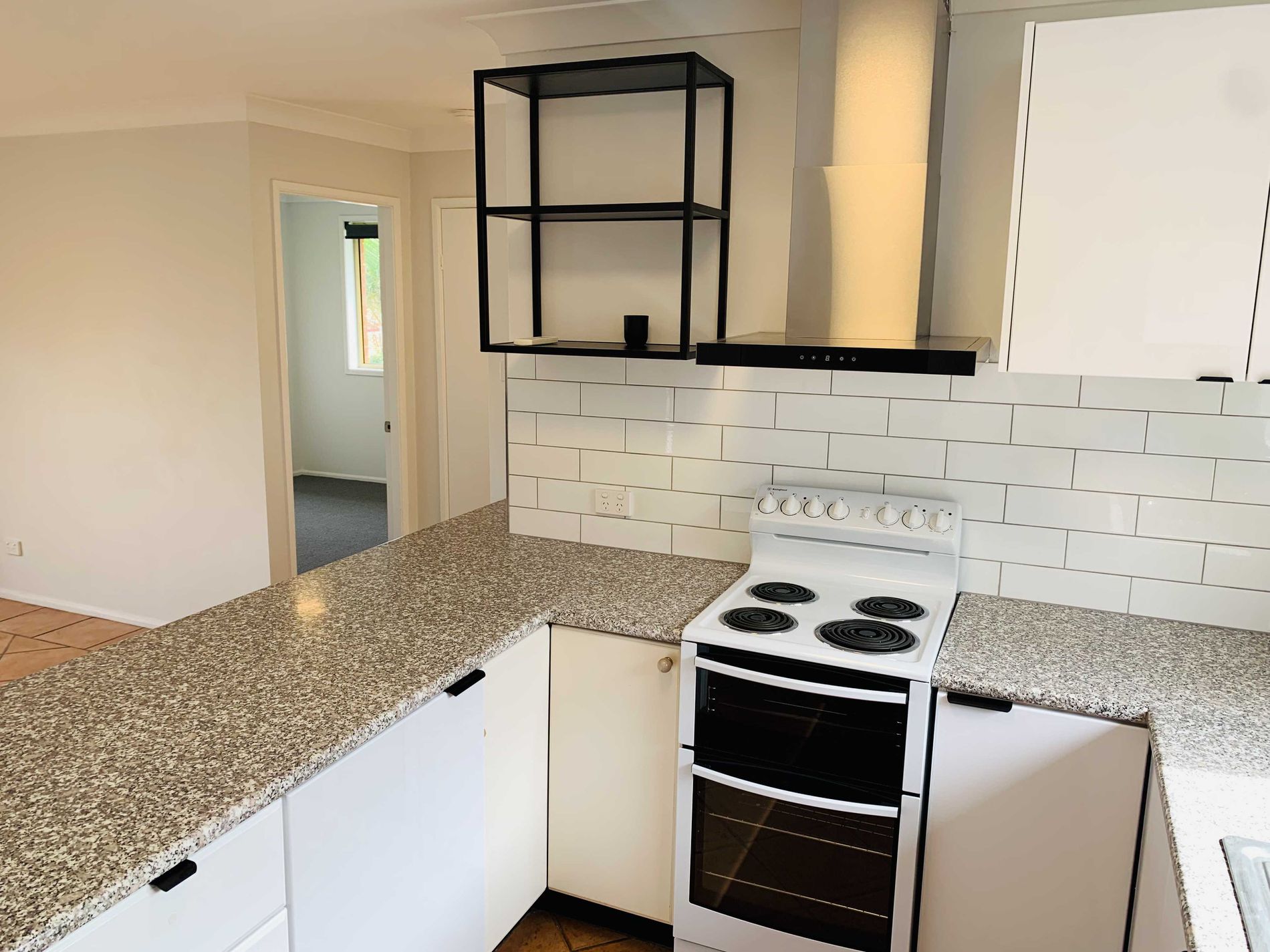 Open plan and updated, kitchen and dining/second living area, which opens to the rear yard. The kitchen itself, includes a breakfast bench and dishwasher.