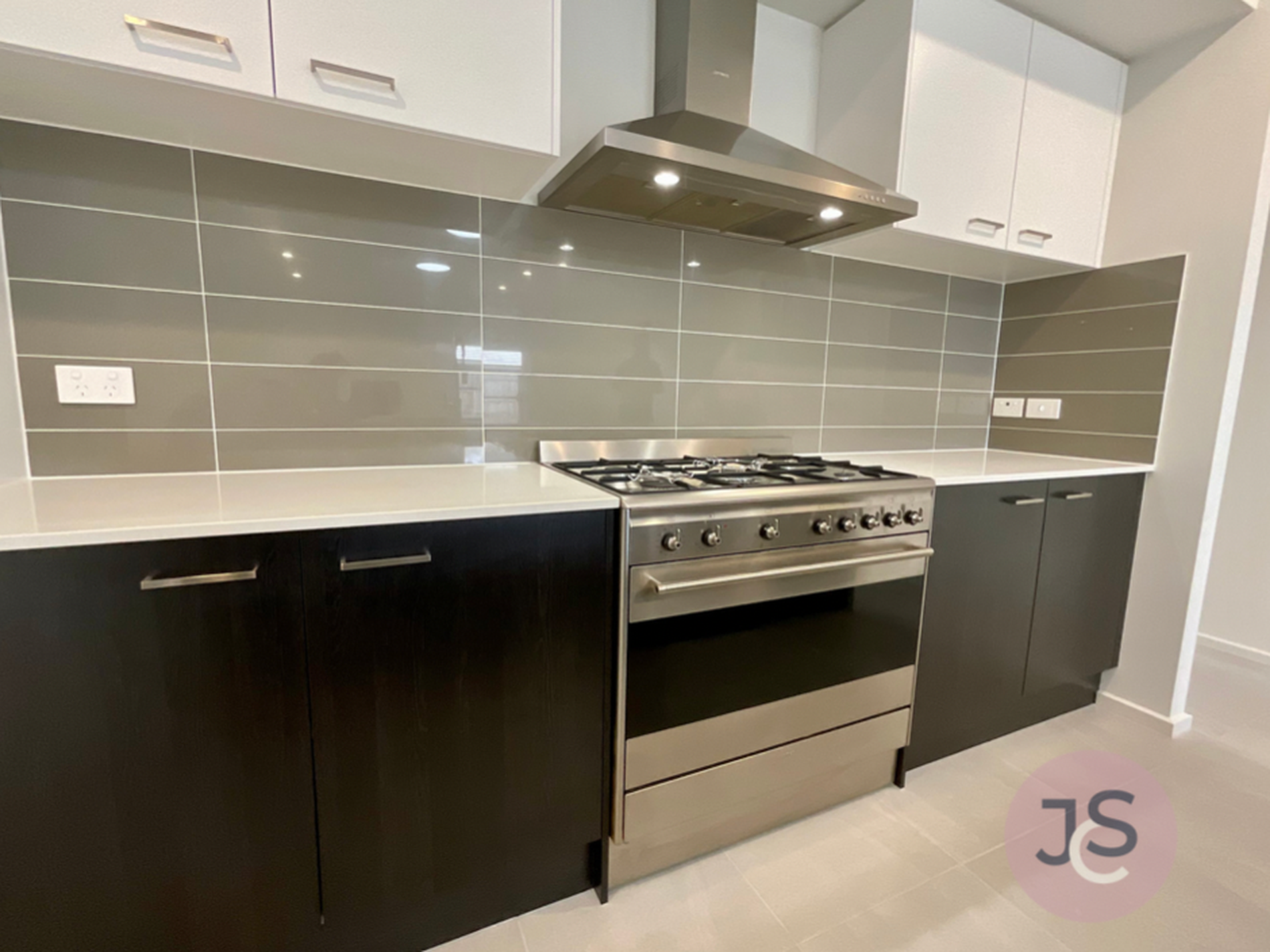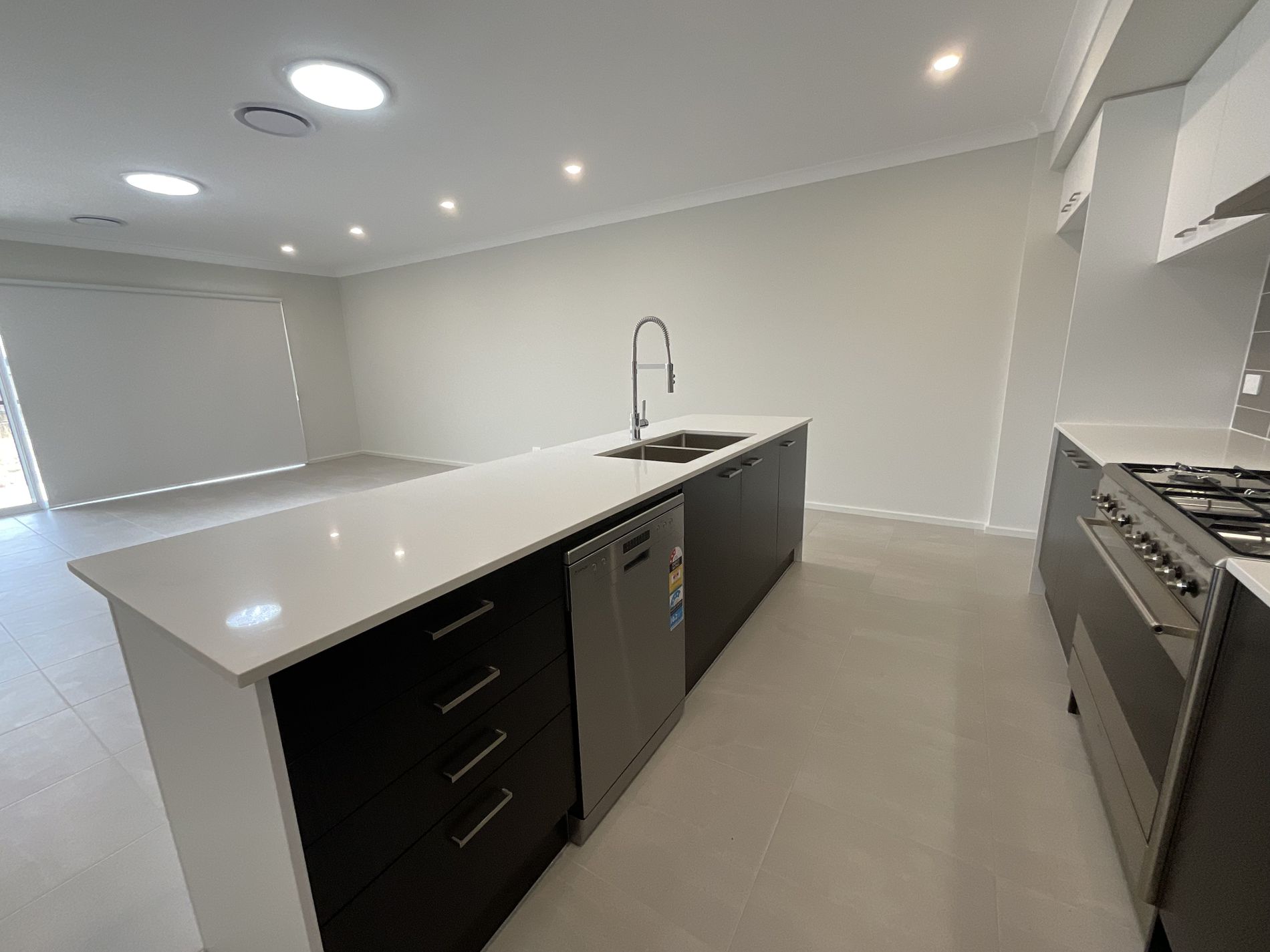 Open plan kitchen with gas cooking and dishwasher
