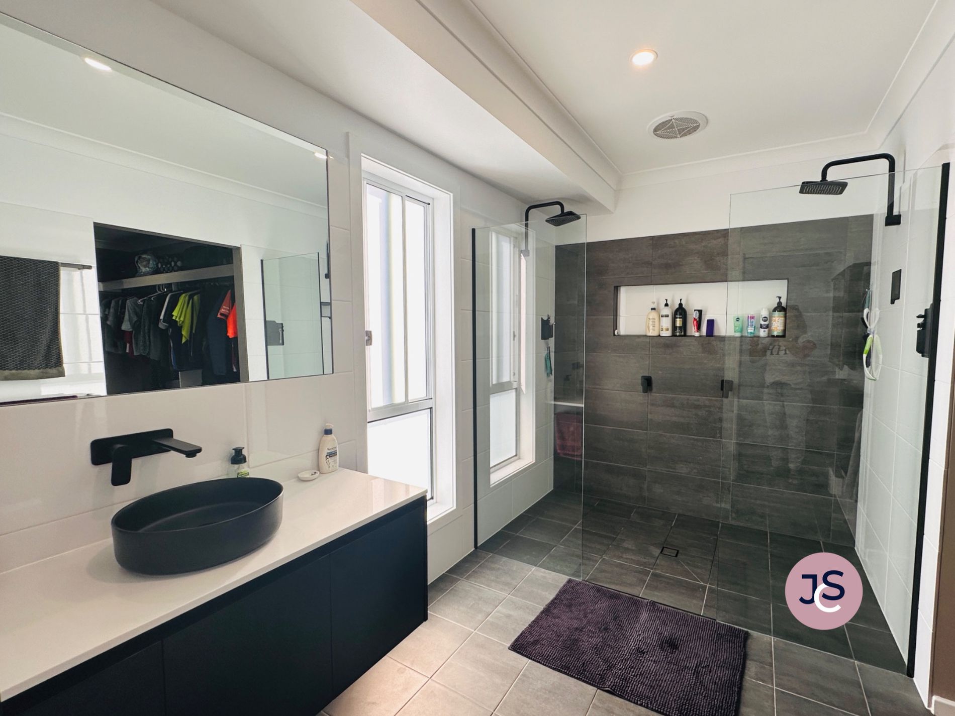 The master bedroom is a true sanctuary, complete with a large ensuite featuring twin shower heads, and a spacious walk-in robe, providing you with your own private retreat. The entertainers' kitchen boasts a large island bench and breakfast bar, furnished with state-of-the-art appliances that make cooking a delight. A generously sized walk-in pantry adds a touch of practicality to the culinary experience.